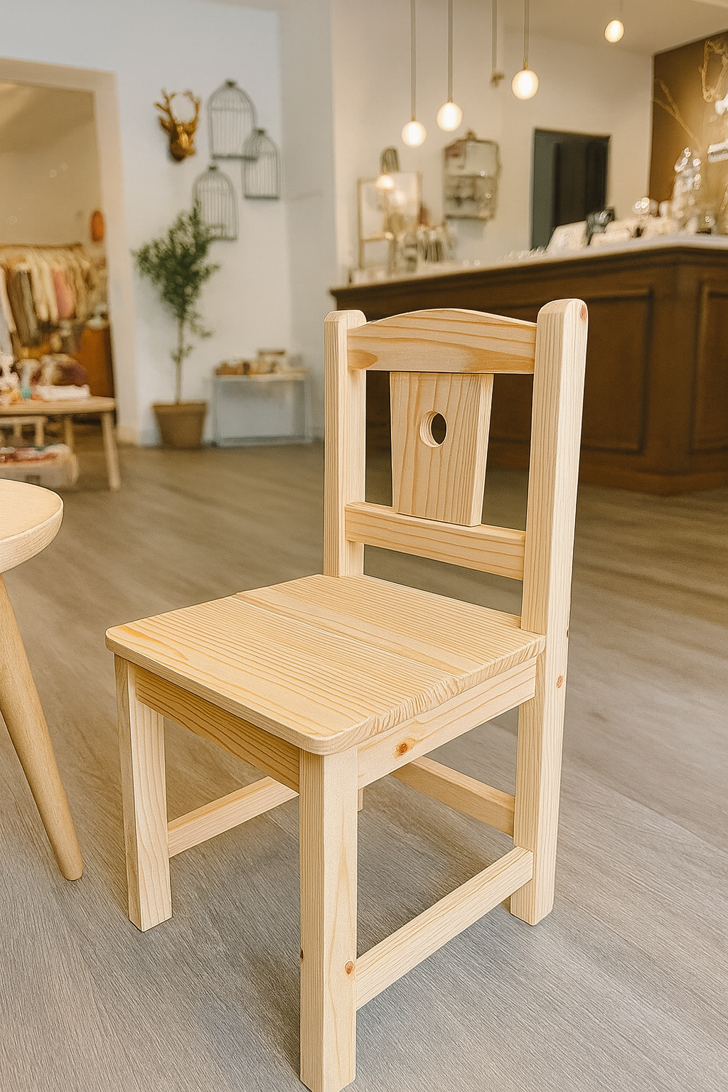 Cette chaise enfant est entièrement fabriquée en bois 100% massif