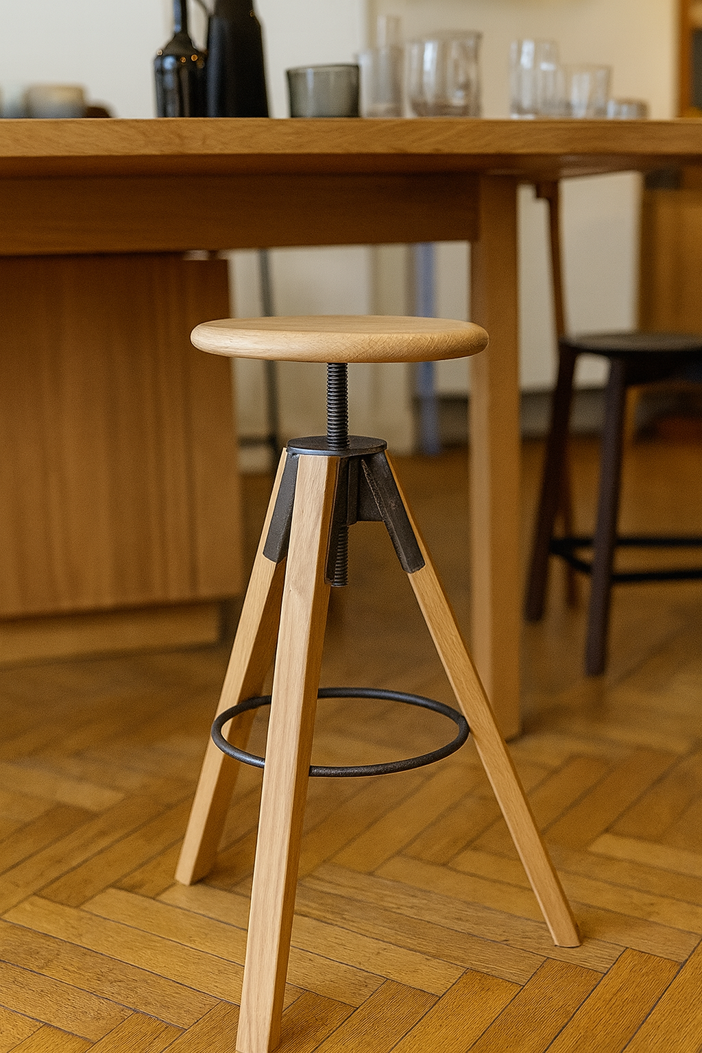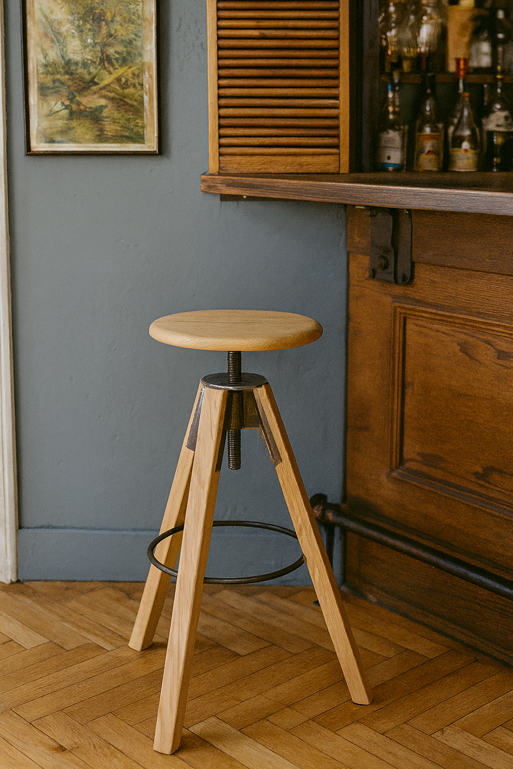 Tabouret bois de bar à vis acier réglable en hauteur chêne massif