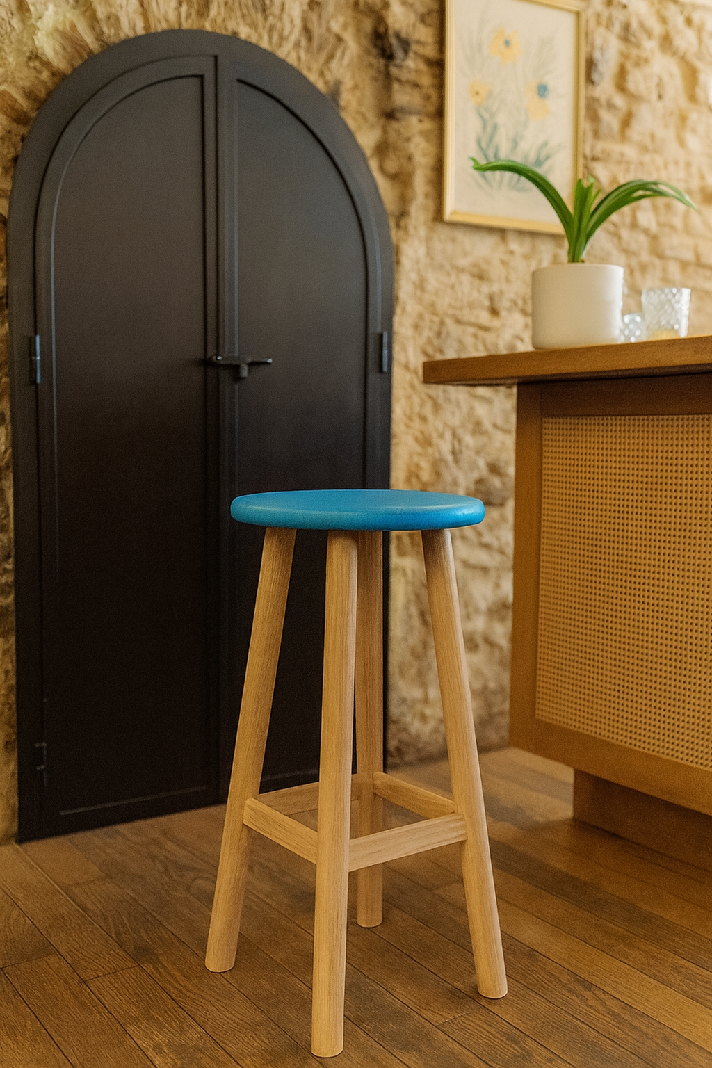 Tabouret bois snack tendance en chêne massif hauteur 65cm
